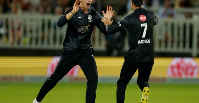 Italy needed 44 runs in the last four overs when the set batter Gian-Piero Meade (22 off 19 balls) lost his wicket. Marcus Campipiano joined Stewart at the crease who was struggling to connect from the other end.