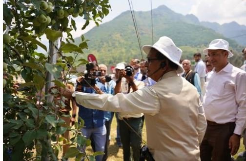 He also observed protective netting systems designed to prevent damage from hailstorms, scientific pruning methods, and efficient water and nutrient management techniques adopted for improving yield and income. Growers who have adopted these modern practices shared their experiences with the Minister and spoke about the increased production and stability in income achieved in recent years.