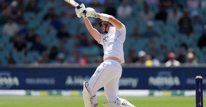 Jamie backed away to smash a shoulder-high short ball over offside, but managed to find Scott Boland at deep cover, giving his wicket to part-timer pacer Marnus Labuschagne for a 76-ball 46, which could have been something bigger, with the batter battling a lean patch.