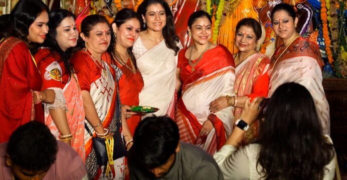 Kajol takes part in ‘Sindoor Khela’ ceremony with daugher Nysa, celebrities join the festivities