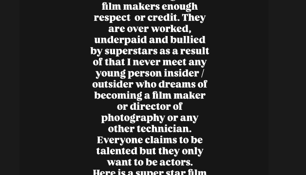 She further stressed that Indian directors are frequently "overworked, underpaid and bullied by superstars," leading to a lack of aspiration among youngsters to pursue filmmaking or technical roles in cinema.