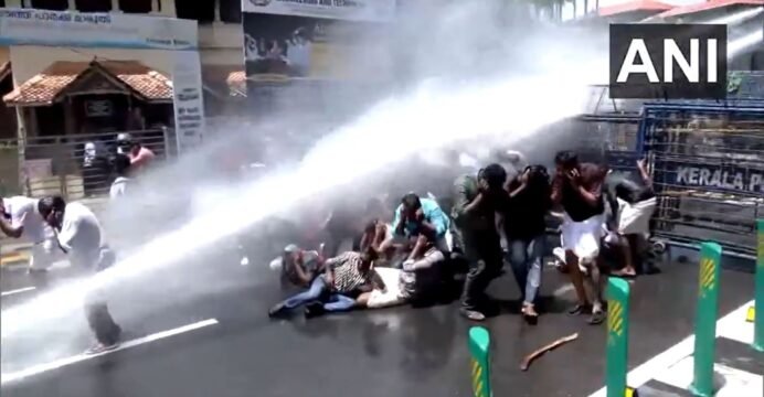 Police used water cannons to disperse the workers of the Youth Congress and detained them.