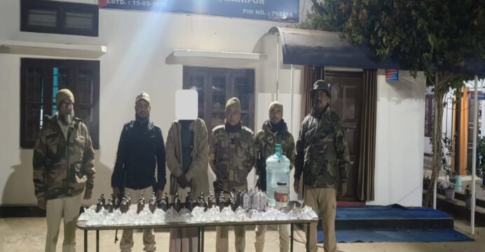 Meanwhile, security forces apprehended Krishna Mohon Namasudra (55) from Latingkhal Part-II in Jiribam district on January 7. During the operation, 20 litres of DIC liquor and 44 bottles (180 ml each) of different brands of Indian-made foreign liquor (IMFL) were seized.
