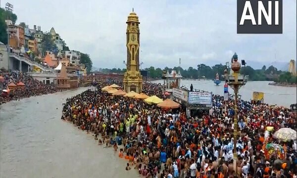 Massive crowd gathers in Haridwar city to take a dip in Holy Ganga for ‘Shravan’ Shivratri
