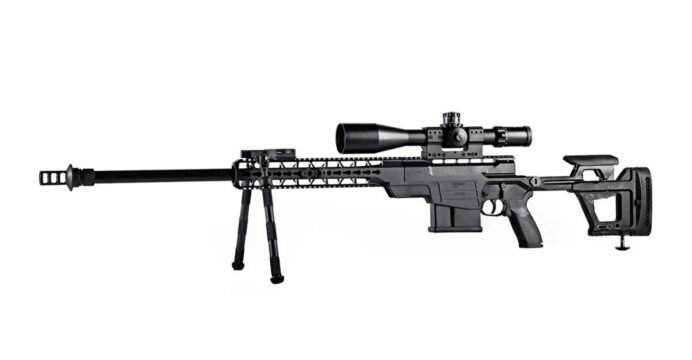 The CSR 338 is a high-performance bolt-action sniper rifle. Chambered in .338 Lapua Magnum, the CSR 338 features a 27-inch barrel with a 10-round magazine, ambidextrous magazine release and safety mechanisms, a two-stage adjustable precision trigger, and a four-position, telescopic, foldable stock. (ANI)