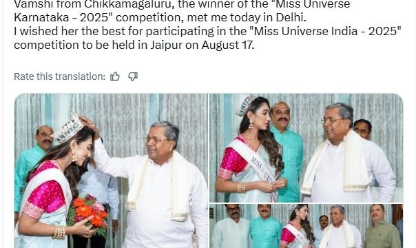 Sharing pictures from their meeting on his official X (formerly Twitter) handle, he wrote, "Vaamshi from Chikkamagaluru, the winner of the "Miss Universe Karnataka - 2025" competition, met me today in Delhi. I wished her the best for participating in the "Miss Universe India - 2025" competition to be held in Jaipur on August 17."