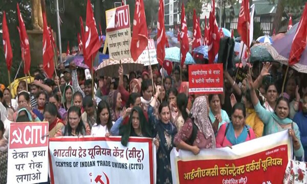 Braving heavy rains, hundreds of workers, including sanitation staff, health workers, bank employees, and anganwadi and midday meal workers, participated in demonstrations demanding the rollback of new labour codes, an end to privatisation, and implementation of long-pending demands.