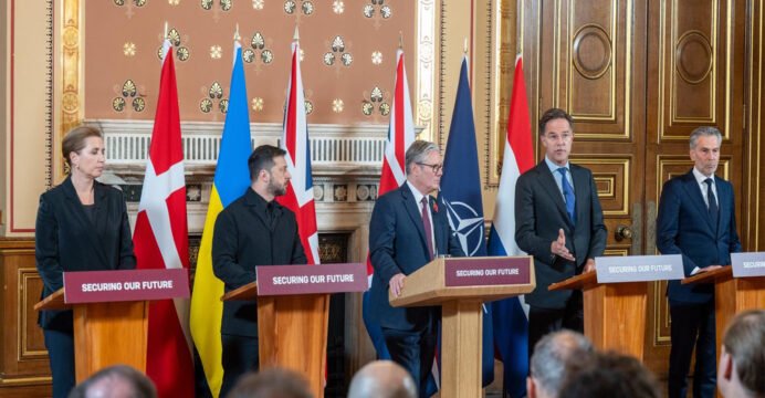 The Coalition of the Willing meeting was co-hosted by UK Prime Minister of Keir Starmer, and French President Emmanuel Macron. After the meeting, the NATO Secy Gen joined Prime Minister Starmer, the President of Ukraine Volodymyr Zelenskyy, the Prime Minister of Denmark Mette Frederiksen, and the Prime Minister of The Netherlands Dick Schoof in a press conference.