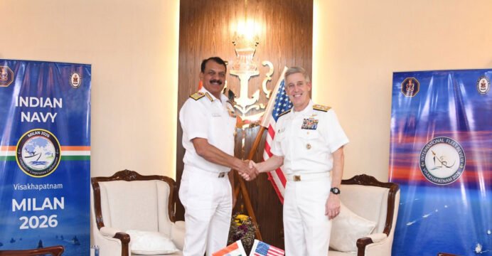 Visakhapatnam (Andhra Pradesh) [India], February 18 (ANI): Chief of Naval Staff Admiral Dinesh K Tripathi held a bilateral interaction with US Pacific Fleet Commander Admiral Stephen T Koehler on the sidelines of the International Fleet Review and Exercise MILAN in Visakhapatnam.