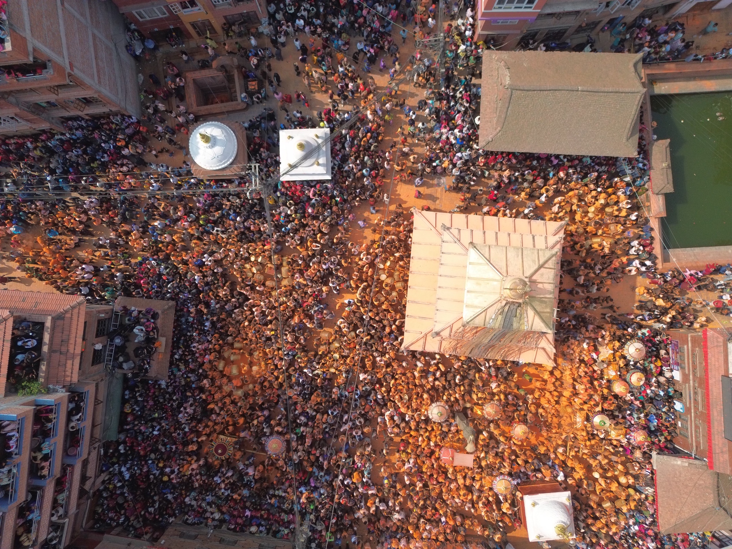 The annual festival of Sindoor Jatra paints the town with orange Sindoor, which is observed on the 2nd of Baisakh, the second day of the first month of the year, as per the Lunar calendar. A total of 26 ceremonial palanquins are brought to the temple square by devotees, completely soaked in Sindoor and accompanied by singing and dancing troupes.