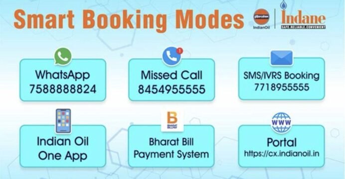 According to Indian Oil Corporation Ltd. (IOCL), LPG cylinders can be booked through WhatsApp (7588888824), Call from registered number (8454955555), SMS/IVRS (7718955555), Mobile App (IndianOil ONE), or Online Portal (https://cx.indianoil.in).