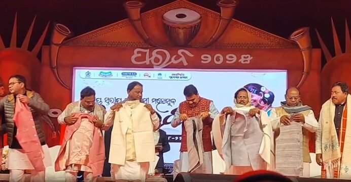 A grand welcome ceremony was held for CM Mohan Charan Majhi as he attended the festival's fourth day in Koraput.