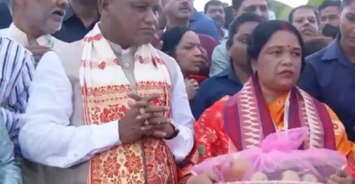 Odisha CM Mohan Charan Majhi performs Chhath Puja rituals along with wife in Bhubaneswar