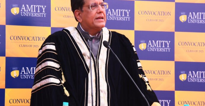 Addressing the students, Piyush Goyal said, "Ashok K. Chauhan, Founder President Amity Education Group, is committed to serving the nation and continues to motivate us. My heartiest congratulations to all the graduands, and they must keep the nation's and Amity's flag flying high. When you are in college, you do not appreciate the hard work of your teachers, but once you have graduated, you understand and appreciate the role of teachers in your life. It is remarkable to see the vibrancy of the students, the variety of subjects, and the courses and opportunities they receive at Amity. It is heartening to see that half of the students are young girls, and I have recognised and awarded so many patent holders and innovators of Amity. Around 50 faculty members of Amity are Ramalingam Swami fellows who have chosen to come back and serve their motherland, which is commendable."