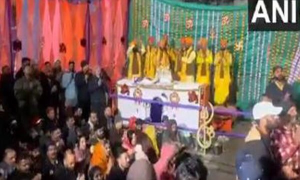 Baltal (Jammu and Kashmir) [India], July 3 (ANI): Pilgrims chanted bhajans and performed Lord Shiva's Aarti as they reached the Holy Amarnath Cave. The first batch of pilgrims had begun their trek towards the Holy Cave of Shri Amarnath from the Baltal base camp this morning. Union Minister Shobha Karandlaje was also a part of this batch of pilgrims.