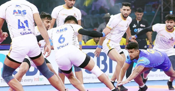 Arjun Deshwal and Vishwas S exchanged blows to open the scoring in this game, with the Warriorz taking a three-point lead in the early exchanges. A tackle from Ankit, and Himanshu Narwal's two-point raid gave them the advantage, but it didn't last for too long. A Super Tackle from Ronak and a four-point Super Raid by Arjun Deshwal turned the tables, giving Tamil Thalaivas a three-point lead.