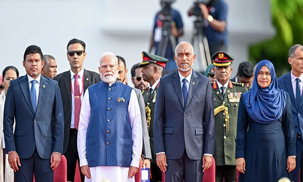 The President's Office said in a post on X, "His Excellency President Dr Mohamed Muizzu and First Lady Sajidha Mohamed observe a special parade and procession by Maldives National Defence Force, held to commemorate the Maldives' 60th Independence Day. The Prime Minister of India, His Excellency Shri Narendra Modi, also attended the celebrations."