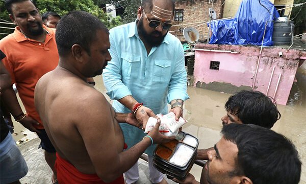 Powerlifting champion Mahant Gaurav Sharma extends help to Yamuna flood victims in Delhi