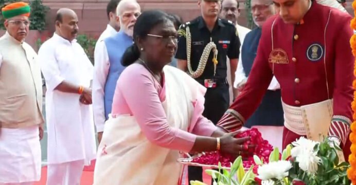 New Delhi [India], April 11 (ANI): President Droupadi Murmu, along with Prime Minister Narendra Modi, on Saturday paid a floral tribute to Mahatma Jyotiba Phule on his 200th birth anniversary at Prerna Sthal on the Parliament premises.