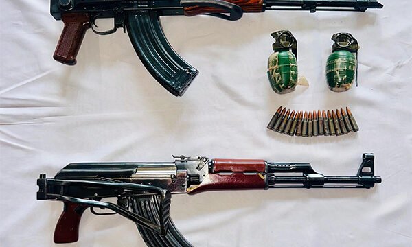 They recovered two AK-47 rifles with 16 bullets, two magazines, and two hand grenades before these weapons could reach Harwinder Rinda's helpers.
