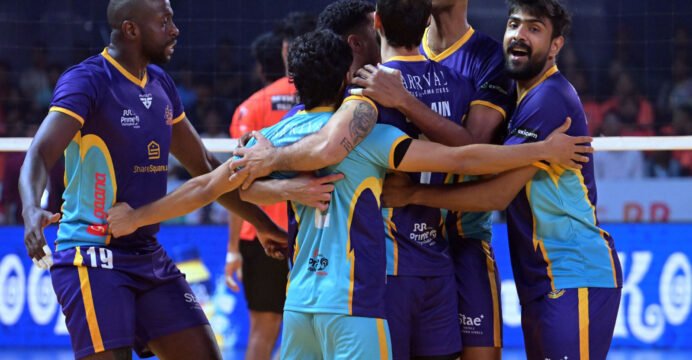 Earlier in the day, Ahmedabad Defenders defeated the defending Champions, Calicut Heroes, 12-15, 15-12, 15-12, 16-14, in the RR Kabel Prime Volleyball League powered by Scapia at the Gachibowli Indoor Stadium, Hyderabad. Battur Batsuuri was named the Player of the Match.