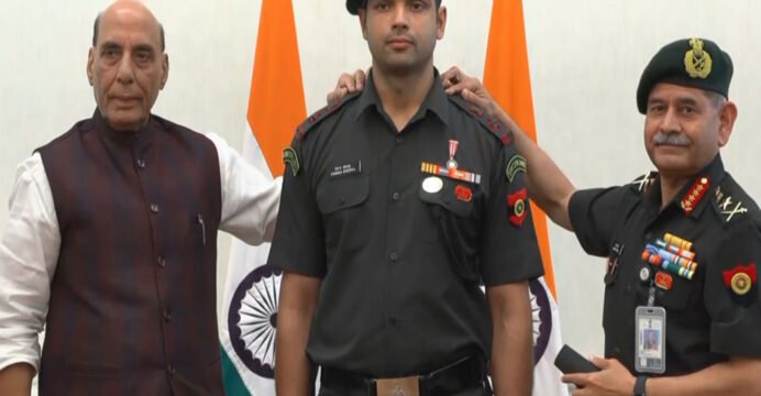 Rajnath Singh formally confers insignia of Honorary rank of Lieutenant Colonel in Territorial Army upon Neeraj Chopra