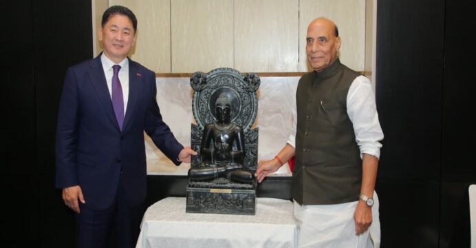 Rajnath Singh meets Mongolian President Ukhnaa, gifts Khiching Stone Buddha as symbol of shared spiritual heritage