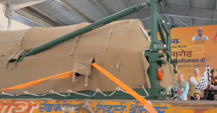 Singh also flagged off the trucks displaying the first batch of locally manufactured BrahMos missiles. Uttar Pradesh Chief Minister Yogi Adityanath and Deputy CM Brajesh Pathak accompanied the Defence Minister.