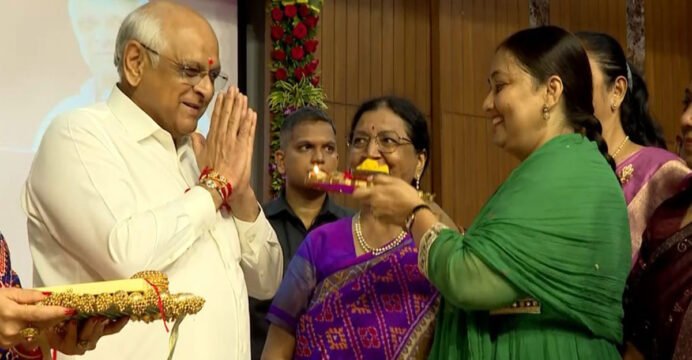 Gujarat CM Bhupendra Patel celebrating Rakshabandhan (Photo @Gujarat Information PR)