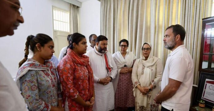 Earlier, Rahul Gandhi met the family and expressed grief over the death of Haryana IPS officer Y Puran Kumar, who allegedly died by suicide at his Chandigarh residence.
