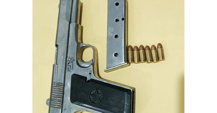 The BSF troops, in collaboration with the Punjab Police, apprehended an Indian smuggler from near Dana Mandi in Dera Baba Nanak, Gurdaspur. The accused is a resident of Kahlanwali village. A pistol with six live rounds has been recovered from his possession.