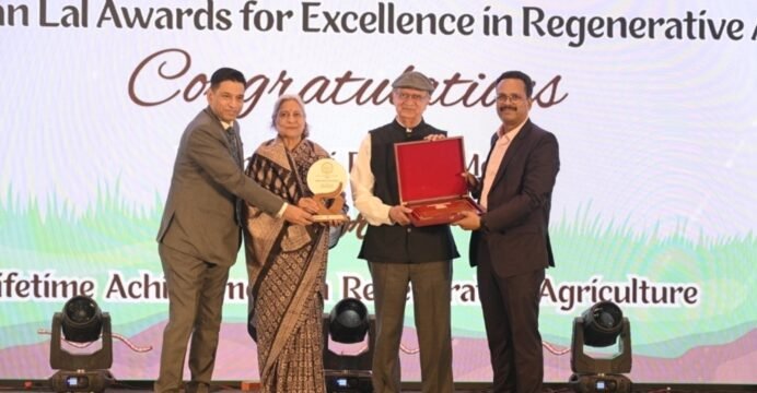 Professor Lal joined the event virtually from the United States, delivering an inspiring address on the urgent need to restore soils for food security, climate action, and ecological balance.The inaugural Lifetime Achievement Award was presented to Padma Shri Dr. M.H. Mehta for his decades-long leadership in eco-agriculture and soil regeneration. Thirteen additional awardees were recognised in different categories for outstanding innovations and impact in regenerative agriculture, including Er. Awadhesh Kumar Nema, ICAR-National Soybean Research Institute (NSRI), Smt. Rajni Kushwah, Dr. Savita Kumari, Dr. Opinder Singh Sandhu, Sarvathobhadram Organics Society, Shri Kamlashankar Vishwakarma, Louis Dreyfus Company India, Jawaharlal Nehru Krishi Vishwa Vidyalaya (JNKVV), Dr. Ram Swaroop Meena, Bharuwa Agriscience, the Solvent Extractors' Association of India, and journalist Mrityunjay Kumar Jha.