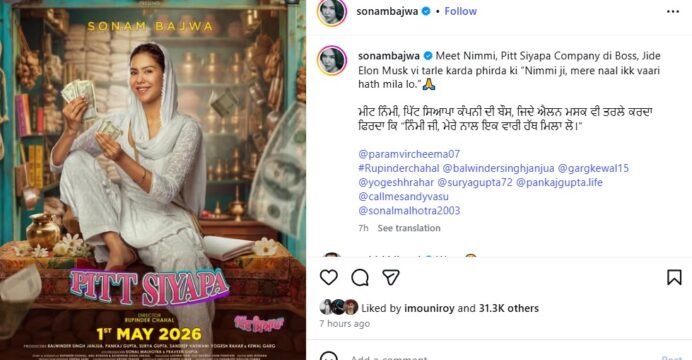Sonam Bajwa’s Punjabi film ‘Pitt Siyapa’ to be released on May 1