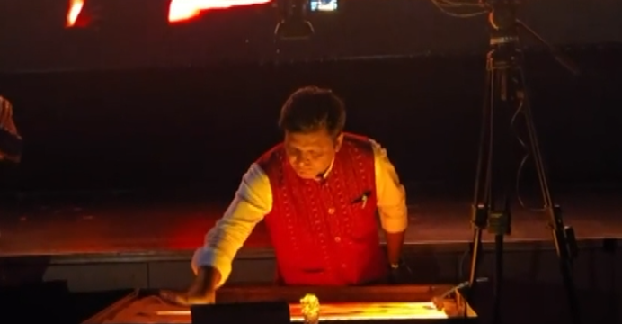 Using only sand as his medium, the artist transformed the stage into a dynamic storytelling canvas, earning sustained applause from the audience.