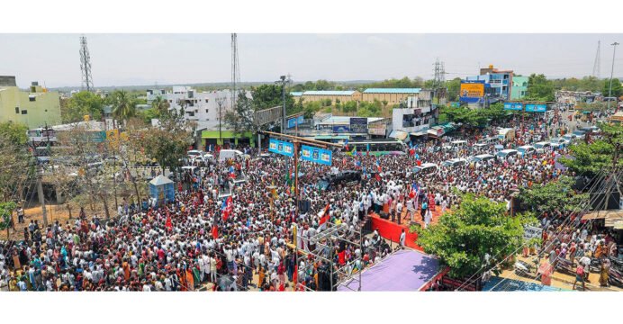 He further claimed that since the BJP cannot directly gain entry into Tamil Nadu, it is attempting to do so through the AIADMK. Referring to the Chief Minister's remarks, he said the election is a contest between Tamil Nadu and Delhi, and called upon the people to defeat "Delhi" and ensure a DMK victory in the state.