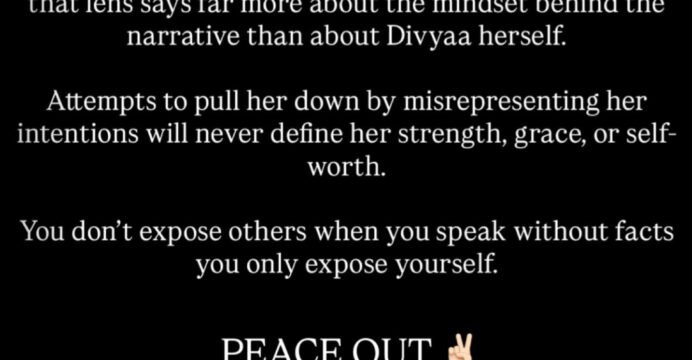 "Dragging someone's personal life into the narrative reflects far more on the person choosing to do so than on the one being spoken about. Divya has always stood for dignity, loyalty, and genuine friendships, and those who truly know her know exactly where she stands," the statement read.