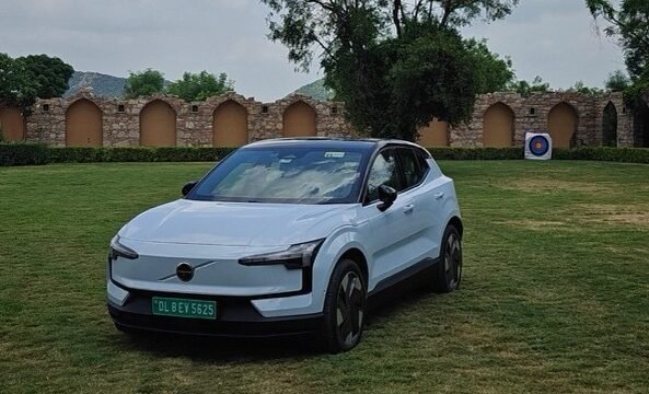 Being the first-ever EV car from Volvo I drove, it left a distinct impression. This is Volvo's smallest and most affordable EV yet; it feels anything but entry-level, and it's the most EV-looking EV car, in my opinion. Volvo calls it a compact SUV, but to me, it's a hatchback where they've taken a big leap with its design and philosophy, and I think it will resonate with a lot more people. There are no ultra-futuristic, edgy lights to remind you of Tesla's Cybertruck yet, the front of the car speaks loudest as an EV.