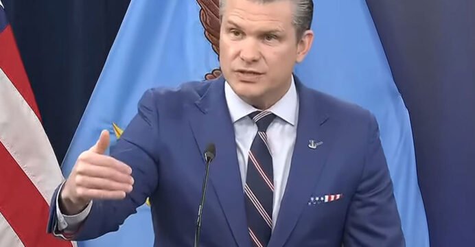 The War Secretary was joined by the Chairman of the Joint Chiefs of Staff, General Dan Caine.