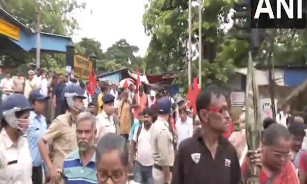 Jadavpur (West Bengal) [India], July 9 (ANI): Left parties' trade unions are staging a 'Bharat Bandh' alleging that the central government is pushing economic reforms that weaken workers' rights. 10 Central trade unions have called the Bandh.