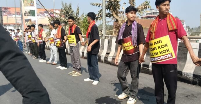Tripura Indigenous Student Federation protests demanding Roman Script for Kokborok language