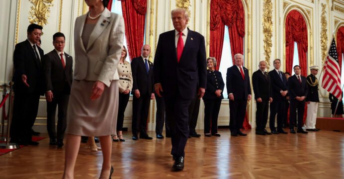 Trump, Japan PM Takaichi receive grand naval welcome aboard USS George Washington in Yokosuka
