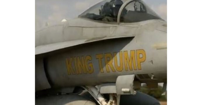 The 19-second-clip shared on Truth Social, Trump was seen dumping mud over protestors and American social media influencer Harry Sisson, from the fighter jet.