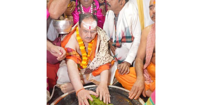 Union Minister JP Nadda offers prayers at Shree Baba Baidyanath Jyotirlinga Temple in Deoghar
