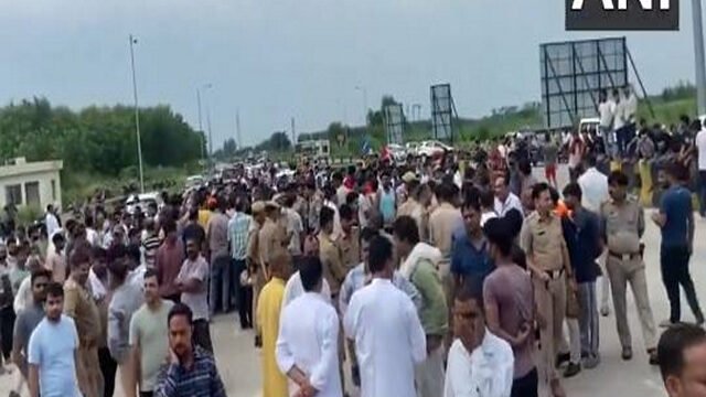 Meerut locals staged a protest on the road demanding strict action against those responsible for assaulting the soldier.