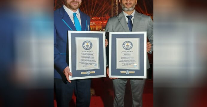 According to officials, over 30,000 volunteers from universities, colleges, and various other departments took part in the diya-lighting and rotational activities. These diyas were arranged in a precise pattern to ensure accurate counting and verification by representatives from Guinness World Records.