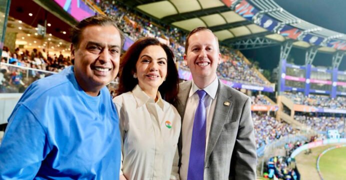 US Ambassador Sergio Gor meet Mukesh Ambani, Nita Ambani at India-US T20 WC clash