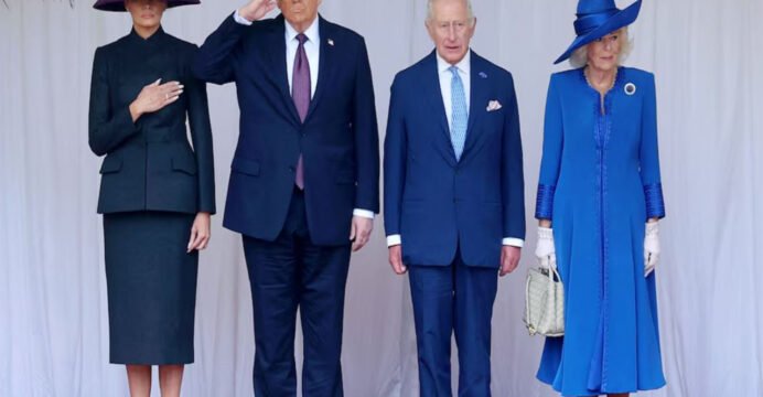 Trump and King Charles reviewed the Guard of Honour at the castle before the US national anthem, the Star-Spangled Banner, was played. The Royals, together with Trump and the First Lady, saluted during the ceremony.