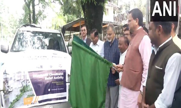 Dehradun (Uttarakhand) [India], August 10 (ANI): Uttarakhand Chief Minister Pushkar Singh Dhami on Sunday flagged off vehicles carrying rehabilitation and relief material to the disaster-affected areas of Uttarkashi from the CM residence in Dehradun.