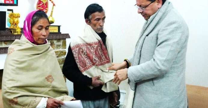 Uttarakhand CM Pushkar Dhami with parents of Ankita Bhandari (Photo/@pushkardhami)