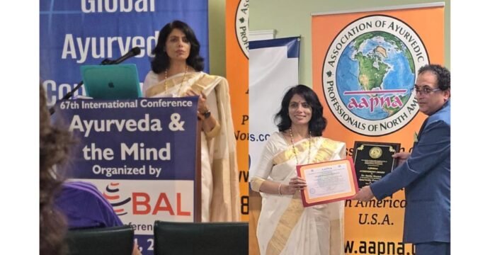 Vaidya Smita Naram Honoured with Lifetime Achievement Award at Global Ayurveda Conference in the USA